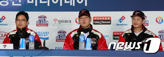 9일 오후 서울 잠실야구장에서 열린 2016 타이어뱅크 KBO리그 와일드카드 결정전 미디어데이에서 LG 트윈스 양상문 감독, 류제국, 박용택이 취재진의 질문을 받고 있다. 2016.10.9/뉴스1 ⓒ News1 임세영 기자