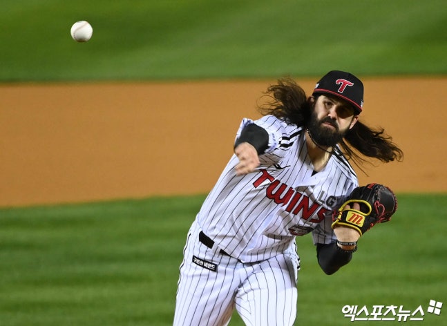 지난 7일 KT와의 한국시리즈 1차전에 선발 등판한 켈리는 6⅓이닝 4피안타 2사사구 6탈삼진 2실점(1자책)으로 KT 타선을 봉쇄했다. 비록 팀은 2-3으로 졌지만, 선발투수로서 해야 할 일을 다했다.
