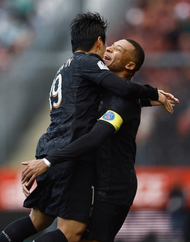 ▲ 이강인과 음바페 ⓒ연합뉴스/AFPRMC스포츠는 "랭스와 경기에서 엔리케 감독은 콜로 무아니가 출전 정지로 빠진 자리에 하무스를 선발 출전시켰지만 하무스는 이번에도 만족스럽지 못했다. 후반 시작과 함께 하무스를 비티냐로 교체하는 강수를 뒀고 이로 인해 이강인이 9번 자리에서 뛰게 됐다. 그리고 이 결정은 더 많은 움직임과 변화로 음바페가 더 많은 자유를 얻는 효과를 냈다"고 조명했다.