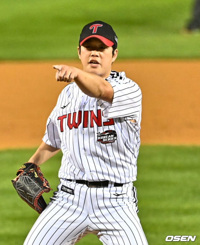 [OSEN=잠실, 조은정 기자] LG 임찬규가 한국시리즈 우승 세리머니에서 기뻐하고 있다. 2023.11.13 /cej@osen.co.kr/waw@osen.co.kr