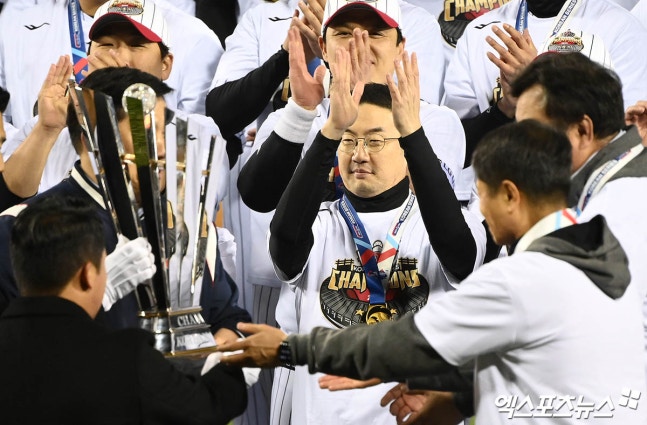 구광모 회장은 염 감독, 오지환, 투수 조장 임찬규와 함께 우승 트로피를 드는 영예도 누렸다. 많은 선수와 격의 없이 진한 포옹을 나누기도 했다. 선수들이 헹가래를 칠 때는 얼굴에 환한 미소도 지어보였다.