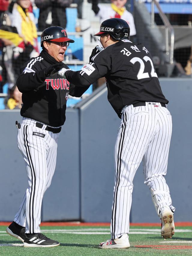이종범(오른쪽) LG 코치가 지도자로 첫 우승 감격을 누리고 LG와 동행을 마무리하기로 했다. 뉴스1LG의 한국시리즈 우승에 힘을 보탰던 이종범(53) 코치가 LG를 떠난다.