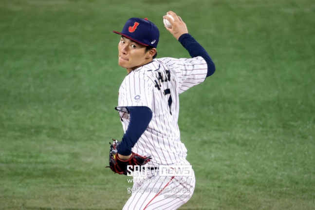 ▲ 야마모토 요시노부가 지난 3월 WBC에서 투구하는 장면이다.
