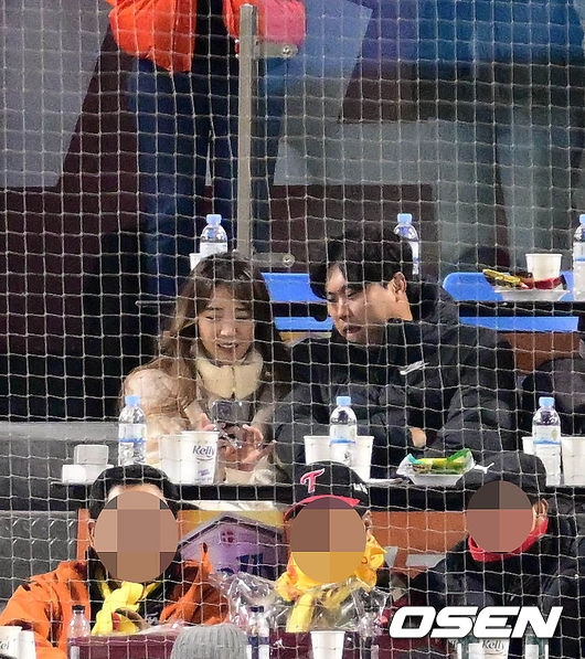 류현진(오른쪽)과 아내 배지현(왼쪽) 아나운서. 올 시즌을 끝으로 토론토 블루제이스와 4년 동행을 마친 프리에이전트(FA) 류현진(36)이 한국시리즈 5차전이 열린 잠실구장을 찾았다. 또 다른 코리안 메이저리거 김하성(28·샌디에이고 파드리스)과 내년 시즌 메이저리그 진출이 유력한 이정후(25)도 한국시리즈 현장을 찾아 LG 트윈스의 3번째 통합 우승을 지켜봤다.