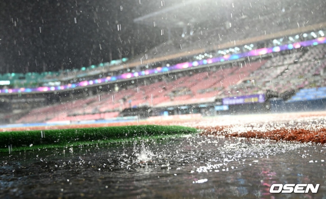 [OSEN=수원, 이대선 기자] 5일 오후 수원 KT위즈파크에서 2023 신한은행 SOL KBO리그 KT 위즈와 LG 트윈스의 경기가 열렸다.4회초 갑자기 내리는 비로 경기가 중단 되고 있다. 2023.09.05 /sunday@osen.co.kr[OSEN=잠실, 한용섭 기자] KT와 NC의 플레이오프 5차전이 열릴 5일 수원KT위즈파크 NC. 그런데 오전 10시반 현재 많은 양의 비가 쏟아지고 있다. 플레이오프 5차전이 정상적으로 진행될 지 불투명하다.