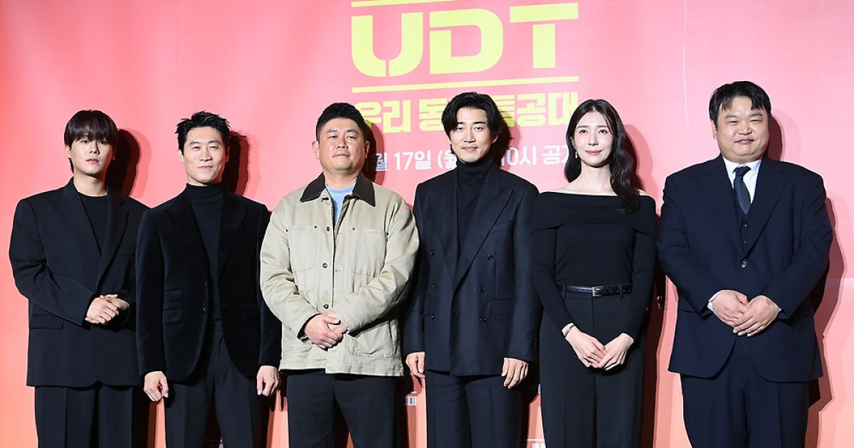 17일 오후 서울 광진구 풀만 앰배서더 서울 이스트폴 그랜드볼룸에서 쿠팡플레이, 지니 TV 오리지널 시리즈 'UDT: 우리 동네 특공대' 제작발표회가 열렸다. 현장에는 배우 윤계상, 진선규, 김지현, 고규필, 이정하, 조웅 감독이 참석했다. 'UDT: 우리 동네 특공대' 는 나라를 지키기 위해서도 아니요, 지구평화엔 더더욱 관심 없는, 오직 내 가족과 우리 동네를 위해 뭉친 예비역 특공대의 유쾌하고 짜릿한 이야기를 담은 작품. '저스티스', '정숙한 세일즈' 등에서 감각적인 연출을 보여준 조웅 감독과 '미씽: 그들이 있었다', '신사장 프로젝트'로 탁월한 실력을 인정받은 반기리 작가, 그리고 신예 김상윤 작가가 의기투합해 주목받고 있다. 연출을 맡은 조웅 감독은 배우들을 캐스팅한 이유에 대해 "캐릭터 궁합이 중요한 작품이라고 생각했다. 사건이 발생하고 인물들만 따라가는 게 아니라 긴장감과 유쾌함을 같이 줘야하는 작품이라서 오늘 오신 다섯 배우분들을 포함해 모든 출연진들이 제가 생각할 수 있는 최상의 조합이라고 생각한다"고 밝혔다. 극중 전직 특작부대 출신 보험 조사관 최강 역을 맡은 윤계상은 작품 출연을 결심한 이유에 대해 "여러 가지 이유가 있는데, 첫 번째는 더 늙기 전에 액션을 해보고 싶다는 욕심이 있었다"고 전했다. 그는 "최강은 이중적인 캐릭터다. 평상시 모습과 위기 상황에서의 모습이 다른 이중적인 인물인데, 그게 매력적으로 다가왔다"면서 "기억에 남는 액션신은 정말 많은데, 그 중 하나가 2회에 나온다. 그걸 해내면서 아직 액션을 할 수 있는 기회가 더 남았다는 생각이 들었다"고 너스레를 떨었다. 전직 대테러부대 출신 청년회장 곽병남 역을 맡은 진선규는 "제가 갖고 있는 착한 느낌보다는 '테토남'적인 느낌을 많이 보여드리기 위해서 안 나는 수염을 붙이기도 했고, 헤어스타일도 이전과는 다른 느낌으로 만들었다"며 "실제로 동네에 있을 법한 사람이라는 느낌이 들게끔 노력했다. 드라마를 보시면 공감하실 수 있을 것"이라고 자신감을 내비쳤다. 특임대 조교 출신 마트 사장인 정남연 역의 김지현은 "마트에서는 잘 웃고 손님들에게 친절한 마트 사장이다. 동네 아이들에게 따뜻하고, 부녀회장이어서 동네 일에 관심도 많고 살림 잘 꾸려보려는 캐릭터"라고 소개했다. 그는 "그래서 마트에 있을 때와 동네에 일이 터졌을 때의 갭차이가 자연스럽게 나왔다. 특임대 출신 조교인 만큼 단단하고 일희일비하지 않고 카리스마있는 모습을 만들어주셨느넫, 웃는 모습은 마트에서만 보실 수 있다"고 덧붙였다. 고규필은 사이버 작전병 출신 특공무술 체육관장 이용희를 맡았다. 그는 "어렸을 때 되게 재밌는 사범님 밑에서 태권도장을 다녔던 기억이 나서 아이들과 친구처럼 재미있게 찍으려고 노력했다. 그런데 생각보다 애들 상대하는 게 힘들더라"고 웃었다. 그는 "참여하는 사람들이 너무 좋아서 한번 더 같이 해보고 싶다는 생각이 있었는데 또 만나서 촬영해서 현장도 재밌었다. 방송 보시면 드라마도 재밌게 나올거라 생각한다"고 자신했다. …